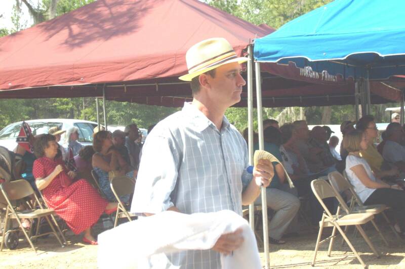 Over 200 people battled the mid-July heat to pay tribute to Private Henry Ellis Thain, the most recent recipient of The Confederate Medal Of Honor. Among those in attendance were Confederate Re-Enactors, Sons of Confederate Veterans’ Dignitaries, descendants of Private Thain, and others who were just interested in “A Saturday Afternoon History Lesson.” This event was both sponsored and conducted by The Dixie Guards, the local Sons of Confederate Veterans’ Camp here in Metter.